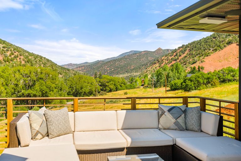 Always in demand but not easily found: both river and fantastic big mountain views! This recently updated, contemporary home has 1,200 square feet of deck for relaxing to the sounds of Snowmass Creek while enjoying spectacular views up and down valley. Comfortable seating areas, a large dining table, a gas firepit, gas heaters, and a gas grill make the deck enjoyable in both summer and winter. Just a few miles from Highway 82 for quick access to Aspen but far enough away for much-needed privacy.